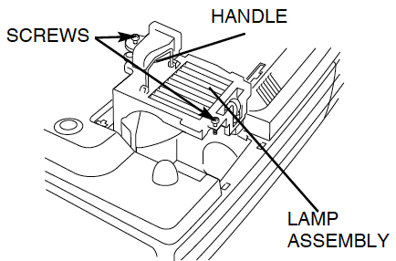 - Inside you’ll find the Sanyo POA-LMP48 (service part no 610-301-7167) lamp cage. Loosen both screws holding the lamp cage in place. Grab the lamp handle and gently lift the lamp out of its socket. Place to one side. Be sure to dispose of the used lamp through a local recycling program. Don’t throw this lamp into the regular garbage as it contains mercury.