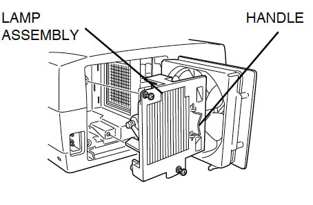 - Taking the new ASK Proxima LAMP-032 (POA-LMP38 service parts no 610 293 5868) lamp assembly by the handle place it into the slot. Avoid touching the actual bulb as the oil from your fingers can burn a black spot on the lenses or you can accidentally break the bulb. Don’t force the lamp into place — it should slide into the slot easily.