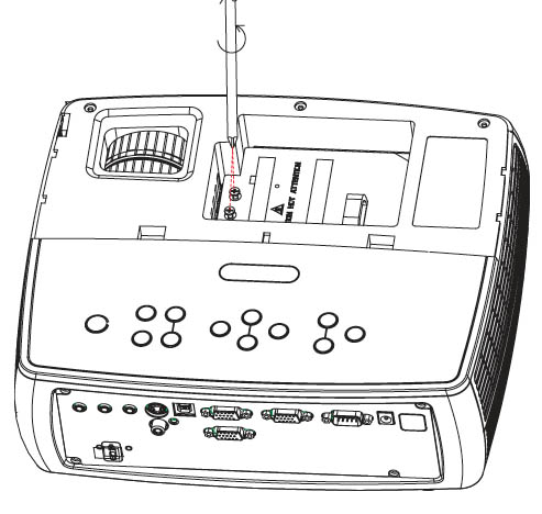 - Loosen the two screws holding the ASK Proxima SP-LAMP-039 lamp housing in place.