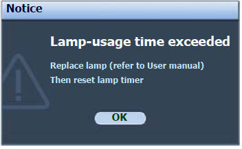 You’ll see a series of warning messages that begin to appear on screen when the BenQ 9E.Y1301.001 lamp is approaching end of life.