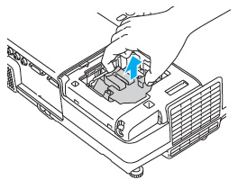 4. Grab the Epson ELPLP42 lamp by the two indents on the lamp. Gently remove the lamp. Pulling too quickly can cause the bulb to shatter. Learn what to do should the bulb shatter.