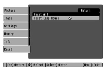 - Lamp hours will be set to zero.