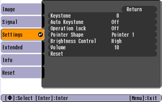 - Scroll down to the SETTINGS. Press ENTER.