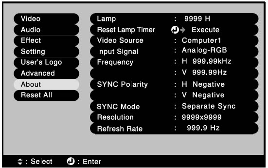 - No lamp hours will appear until you have used the Epson ELPLP15 for at least 10 hours.