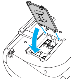 Replace the Epson V11H128020 lamp cover by first inserting the tabs, and then pressing towards the projector until it clicks into place.