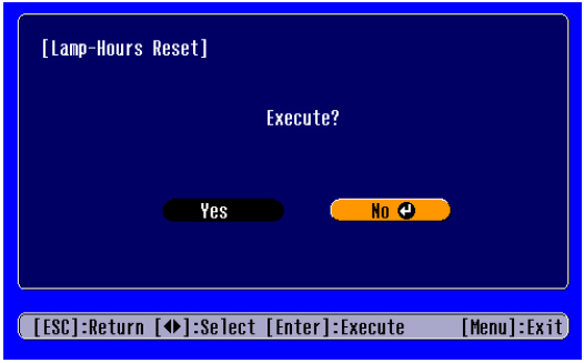 - Click on YES to reset the lamp hours to zero. The lamp hours will be reset.