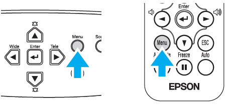 Use either the control panel keys on the Epson V11H128020 or the menu options on the remote control top access the MENU screen.