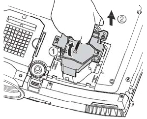 Lift up the wire handle on the Epson ELPLP22 lamp and use it to pull the lamp straight out of the projector. Gently insert the new Epson ELPLP22 lamp. Avoid touching the actual bulb as the oil from your fingers will leave marks that will show up on screen. Also avoid knocking bulb as it may break. Learn what to do should the bulb shatter.