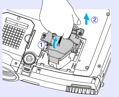 Lift up the wire handle on the Epson ELPLP22 lamp and use it to pull the lamp straight out of the projector.