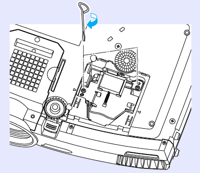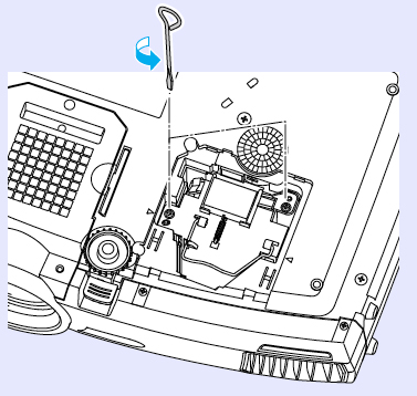Insert the screwdriver supplied with the new Epson ELPLP22 lamp or use a flat-tipped screwdriver and loosen the two screws holding the lamp in place.