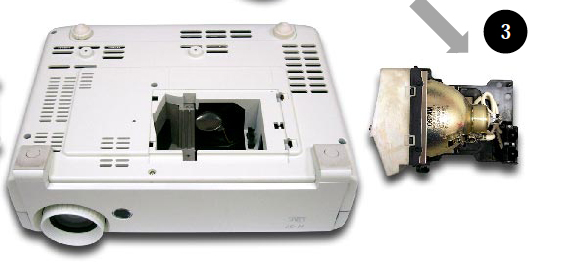 - Lift the wire handle on the Optoma BL-FU250A projector lamp and gently remove it from the projector. Be careful not to hit the lamp or you can cause it to break.