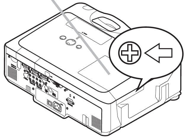 Loosen the screw on the lamp cover (marked with an X). Slide the cover to off the projector and set it one side.