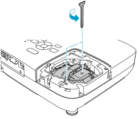 Loosen the two screws holding the Epson ELPLP58 projector lamp in place (you can’t remove them).
