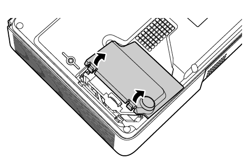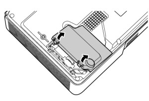- Press on the tabs located on top of the Epson PowerLite 732 cover. Lift up the lamp cover.