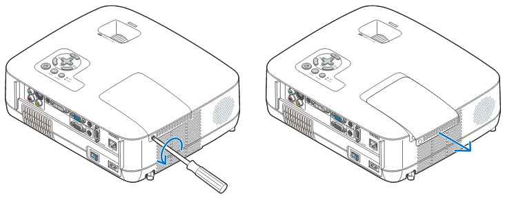 Loosen the two screws holding the NEC NP14LP projector lamp in place. (The screws will not come out only loosen.) Remo