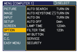 - Turn the projector on and reset the filter time using the FILTER TIME item in the EASY MENU.