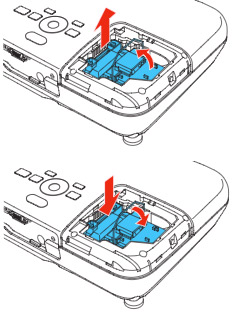 Grab the Epson ELPLP67 projector lamp by the wire handle and gently pull the sprojector lamp out. Pulling too quickly can cause the bulb to shatter. Learn what to do should this happen. Gently insert the Epson ELPLP67 projector lamp making sure it’s facing the right way.