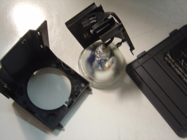 What we’re looking at it is the RCA 270414 TV Lamp lamp enclosure. There is one screw on each side that need to be loosened.