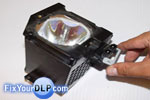 Una vez mas: Finalizado el reemplazo , Limpie su lampara y portalamparas con una tela limpia y sin pelusas antes de reinstarla en su television.