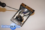 4.-Continuamos por retirar los tornillos del seguro metálico que sujeta al foco. |