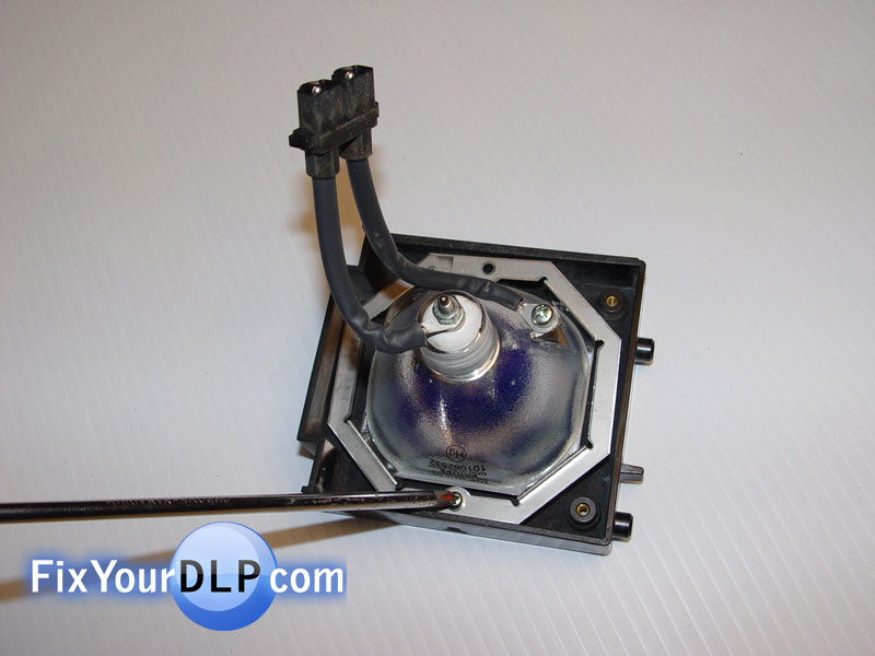 9.-Ahora quite los tornillos al costado que detienen los cables del bulbo y la tuerca arriba de este. |
