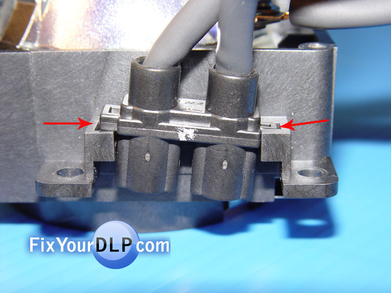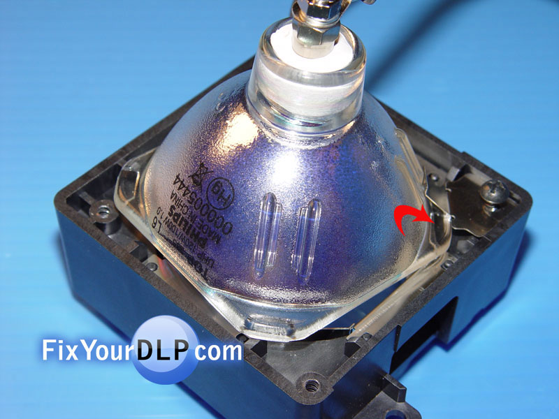 3.-Inside the exposed lamp you’ll notice two clips securing the lamp held by a screw. |