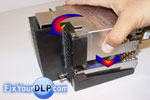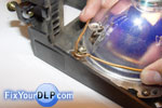 7.- Alrededor de la lámpara en la parte inferior se encuentran dos sujetadores metálicos que están unidos por un tornillo, desatorníllelo. |