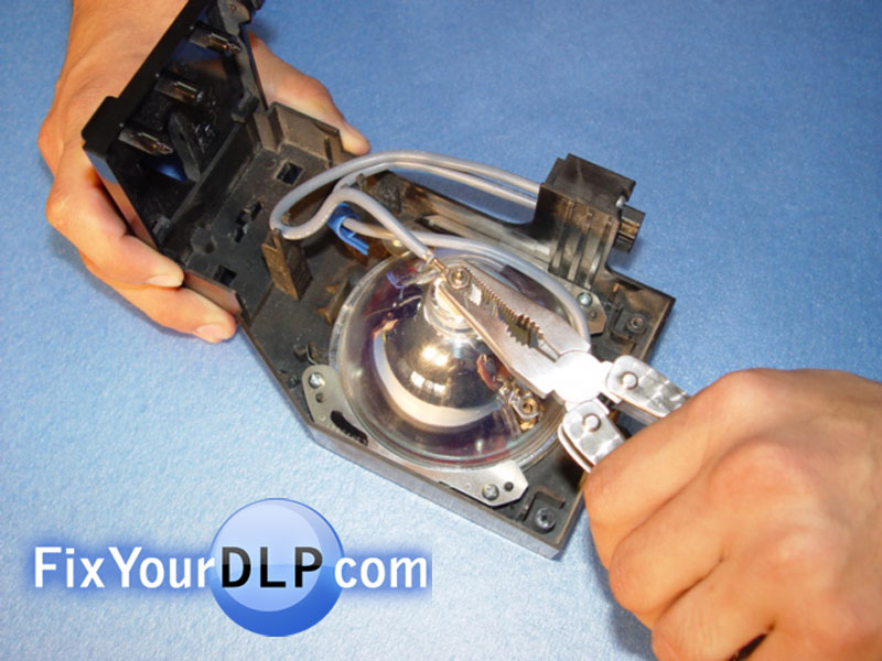 10.- Con pinzas remueva la tuerca que se encuentra en la parte superior de la lampara y retire el cable. |